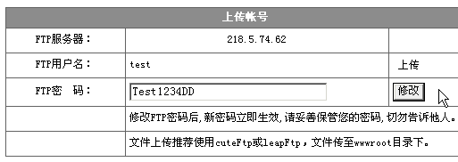 2> 在"基本管理功能"页面,填入新的上传密码,点击修改即可,马上生效,该项技术目前在国内仅被为数不多的企业所掌握:
