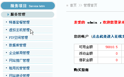 1> 进入虚拟主机管理界面: