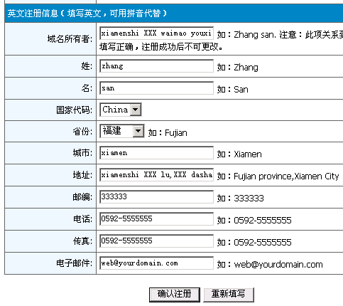 注意事项:域名所有者代表域名所有权,请千万别填错。